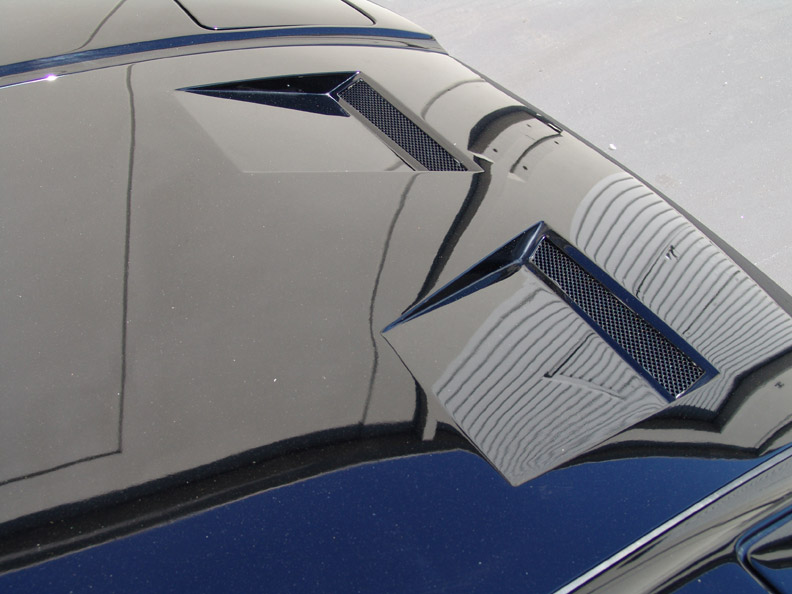 formed hood with angled air exhaust vents. |