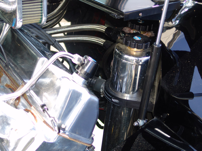 gas tank and treated engine bay. |